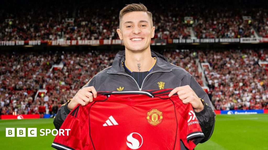 ‘World-class potential’ – Sesko joins Man Utd for £74mImage source, Getty ImagesImage caption, Sesko follows Matheus Cunha and Bryan Mbeumo in joining Manchester United this summerManchester United have completed the signing of RB Leipzig striker Benjamin Sesko in a move worth £73.7m.The deal for the Slovenia international, who has joined on a five-year contract, includes a guaranteed payment of £66.3m, with the remainder in add-ons.He is United’s third major signing in attack following the arrivals of Matheus Cunha for £62.5m and Bryan Mbeumo for £65m with £6m in add-ons, with the trio presented to the club’s fans prior to Saturday’s pre-season home game against Fiorentina.