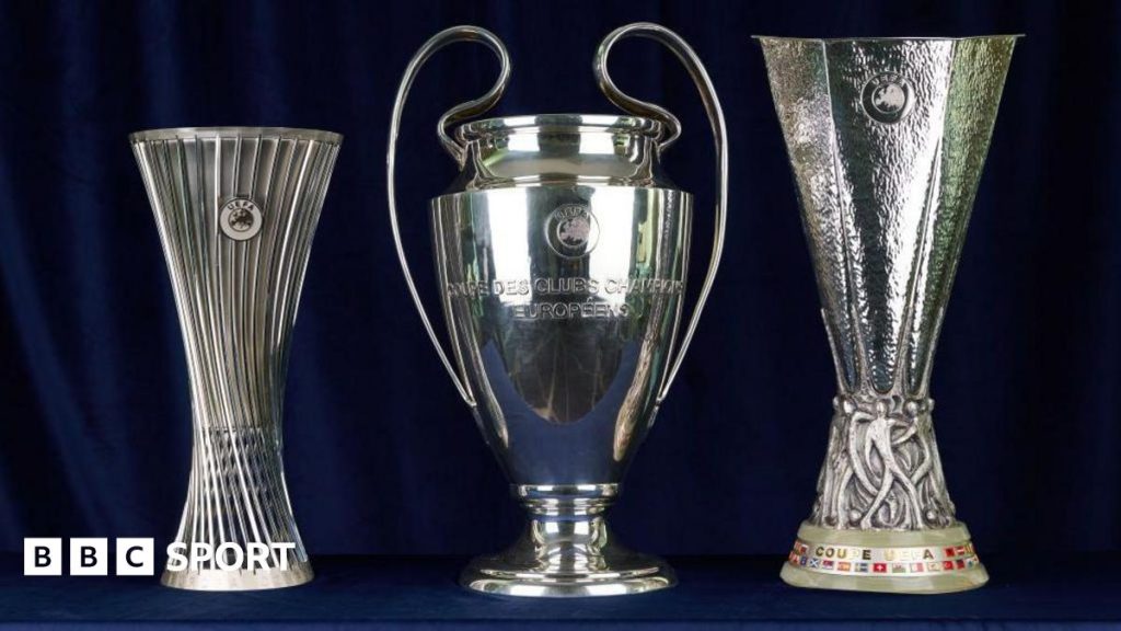The 2025 Champions League final kicks off at the Allianz Arena in Munich, Germany on Saturday, 31 May at 20:00 BST.The winner of the semi-final between Arsenal and Paris St-Germain will be the designated home team.PSG won 1-0 at Emirates Stadium, while Barcelona and Inter Milan drew 3-3, in the first legs of the ties.In April, it was announced that American rock band Linkin Park will headline the ‘pre-match show’.The two teams in the final will receive 18,000 tickets each, remaining tickets for the 75,000-capacity stadium will be offered to fans worldwide.Ticket prices range from 70-950 euros (£59-£809).Image source, Getty ImagesImage caption, Four English teams could reach the Champions League, Europa League and Conference League finalsWhen is the Europa League final?The Europa League final will take place on Wednesday, 21 May, at 20:00 BST.It will be played at San Mames Stadium in Bilbao, Spain and the winner of the semi-final between Tottenham and Bodo/Glimt will be the designated home team.Athletic Club are taking on Manchester United in the other semi-final so have a chance of playing the final in their home stadium.However, they trail 3-0 after the first leg with the second leg taking place at Old Trafford on Thursday, 8 May.Tottenham will also take a lead into the second leg, having beaten Bodo/Glimt 3-1 at home in the first leg.’Europa League final will not be switched to England’Uefa has said there is no chance of the final being moved from Bilbao to England in the event of an all-English final.A total of 15,000 tickets will be available to each team in the final with ticket prices ranging from 40-240 euros (£34-£204) for the 53,289-capacity stadium.BBC Sport’s chief football news reporter Simon Stone said: “I did a quick check on a flight booking and hotel booking site and came up with a cheapest two day trip of £1650, excluding tickets and food, and transportation.